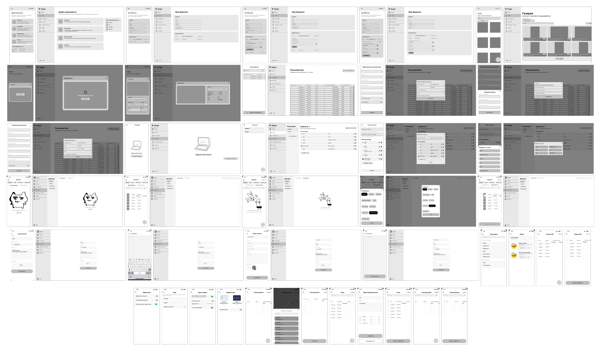 Разработка ключевых экранов интерфейса: создание экранов для админ-панели, разработка юзер-флоу, создание макетов и проработка поведения элементов интерфейса.