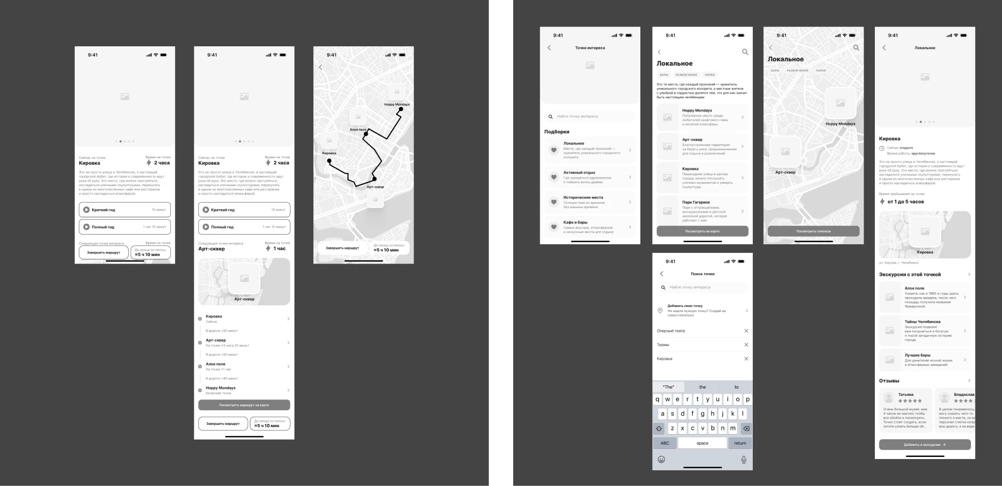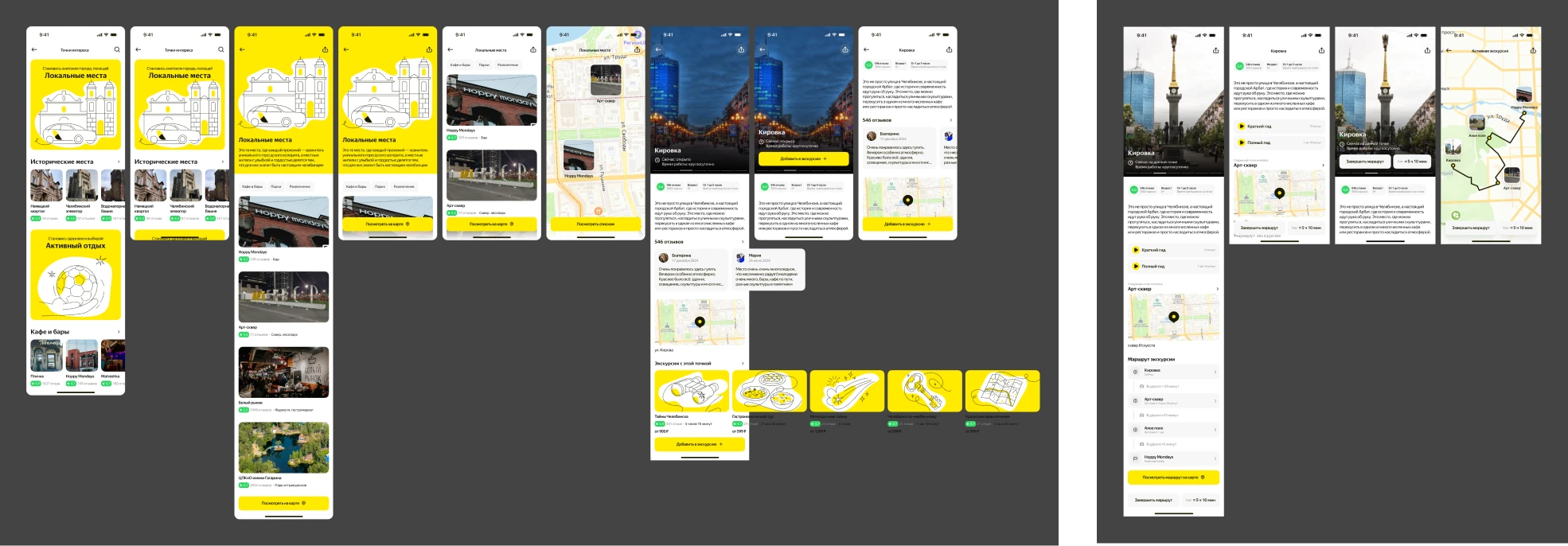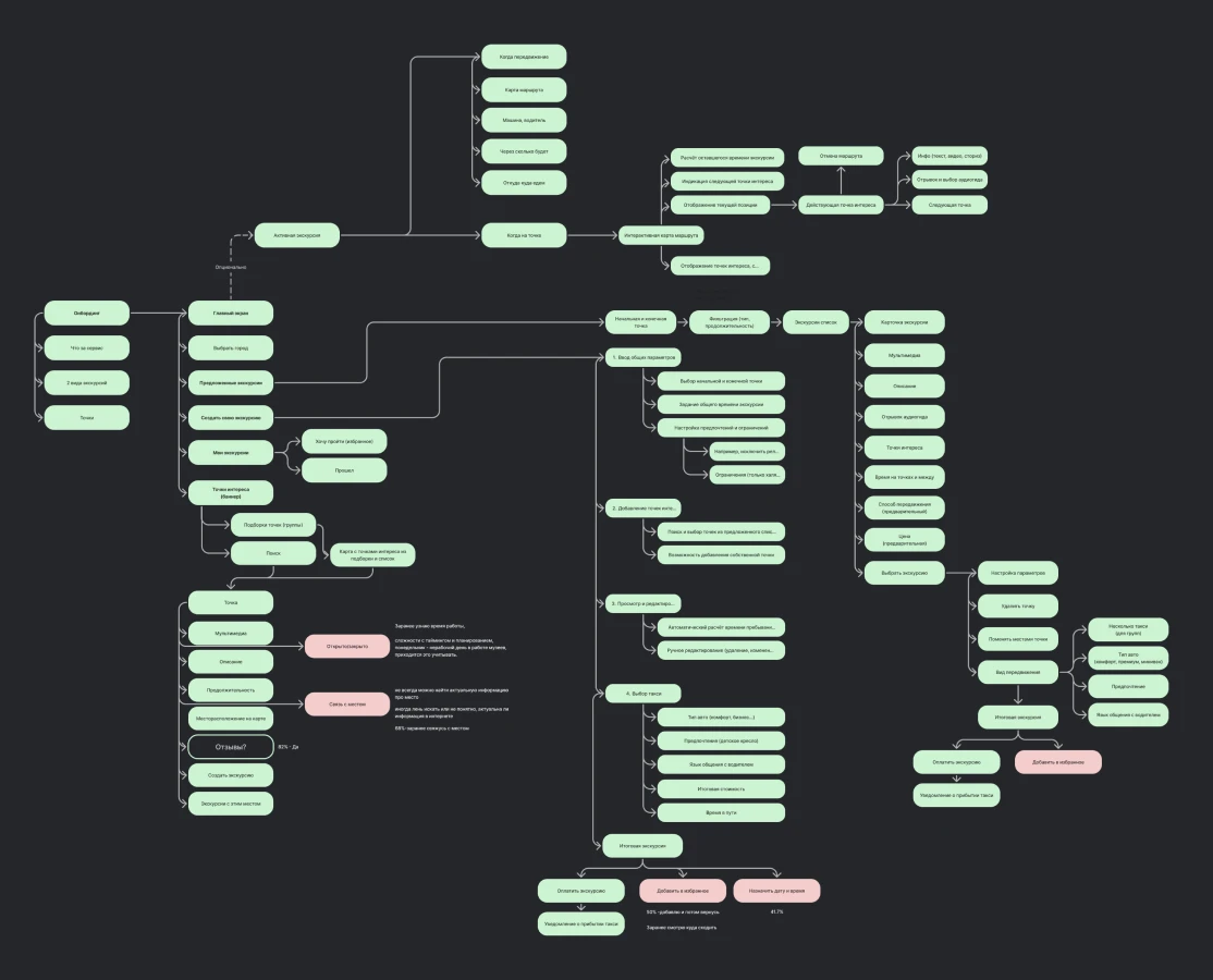 User Flow: разработали отдельные ветки (например, точка интереса, активная экскурсия).