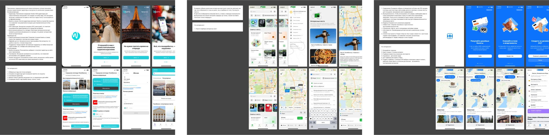 Мобильный сервис, объединяющий экскурсии, достопримечательности, рестораны и мероприятия в одном приложении. Пользователи могут создавать собственные экскурсии, редактировать маршруты, настраивать фильтры (например, «без ступенек», «халяльные рестораны»), слушать аудиогиды и сразу заказывать такси для перемещений.