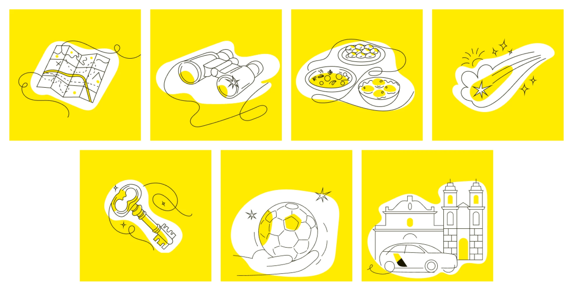 Создала набор иллюстраций в лайновой графике, поддерживающих фирменный стиль Яндекс. Они использовались как в интерфейсе, так и в рекламных материалах