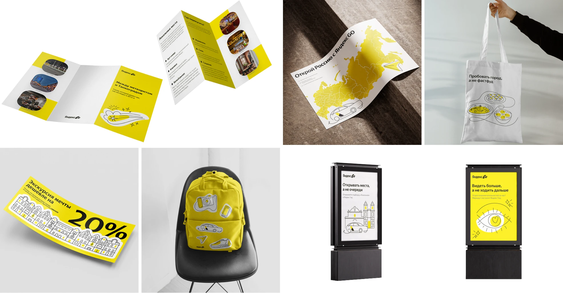 Современный UI: фирменный стиль Яндекс в приложении и рекламных материалах.